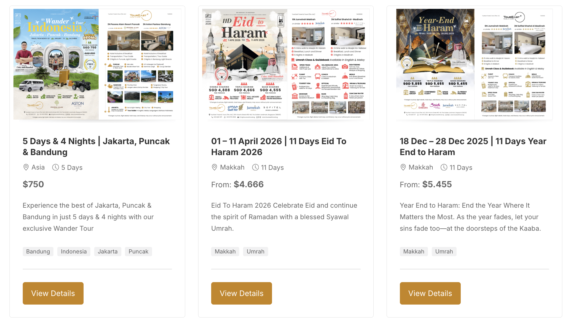 Visit our Travel Packages browse the destinations that capture your interest, select the package most suitable for you, and then click the ‘View Details’ button