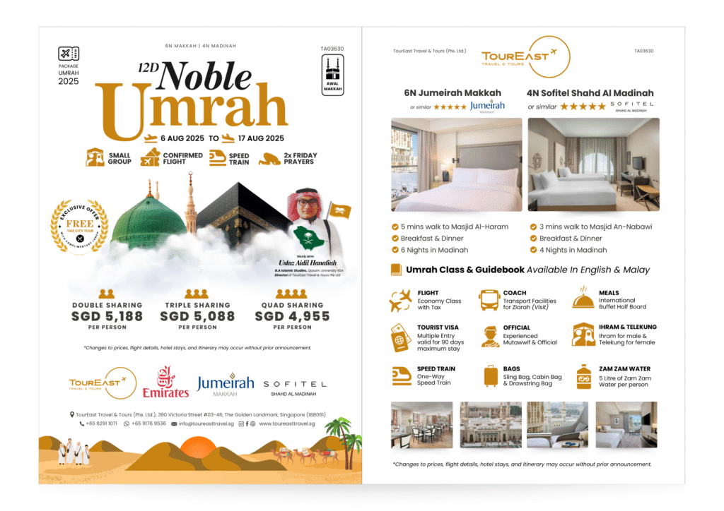 Join us on a soulful 12-day Noble Umrah from 6–17 August 2025 – a journey of a lifetime guided by Ustaz Aidil Hanafiah!